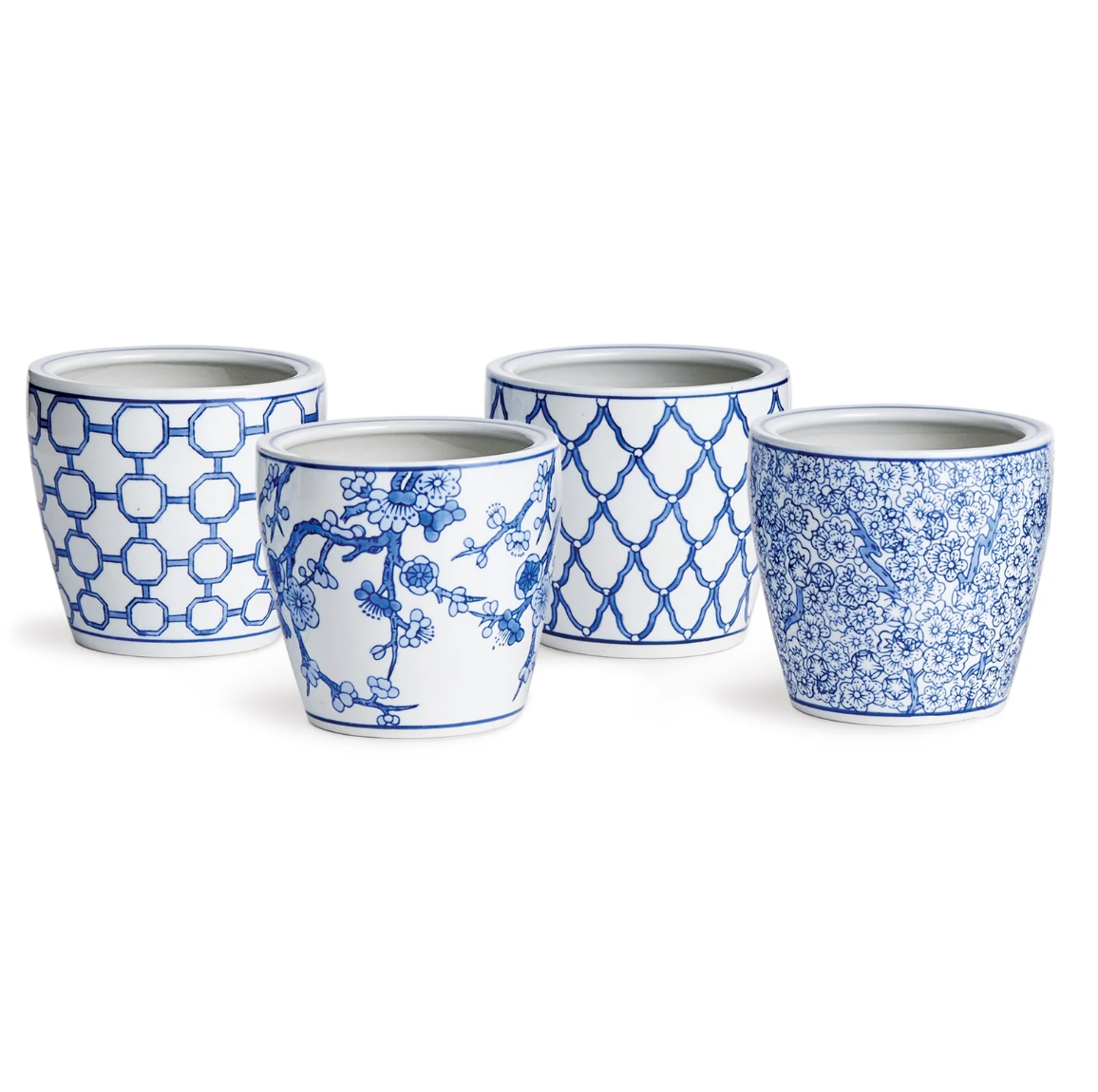 In a mix of classic patterns, this set of four hand-painted pots are perfect for a beach cottage. From the collection of Barclay Butera, yet another classic touch of coastal elegance.