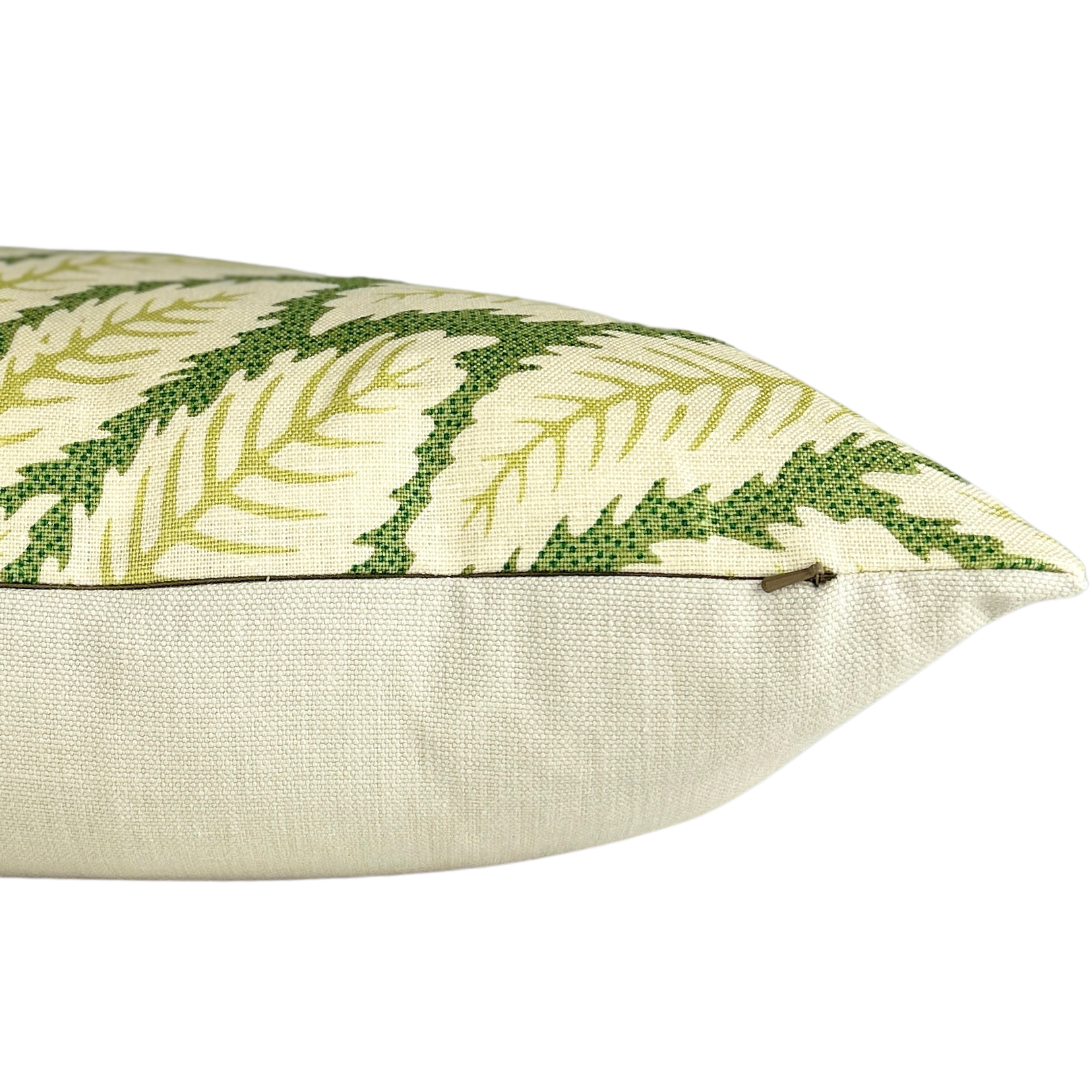 Enhance the look of any room with this sophisticated and stylish pillow. The beautiful print in shades of chartreuse and leaf green, along with the solid sand colored backer, makes for a perfect accent on any sofa or bed.