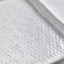 Cast from a real woven basket and finished in a thickly applied translucent glaze that falls away from embossed areas. A nice light, neutral addition to the modern tablescape. A beautiful serving platter fit for your most cherished guests.