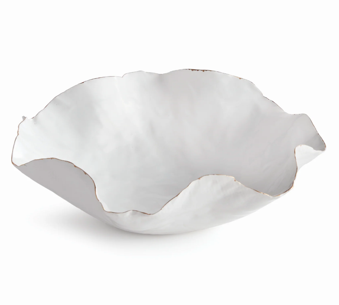With crimped edges and natural form, this decorative tray is a real statement-making centerpiece. The hand-brushed gold tipped edges are electroplated for shine and durability. Place atop a few art books on coffee table, or on a side table for a stunning look.