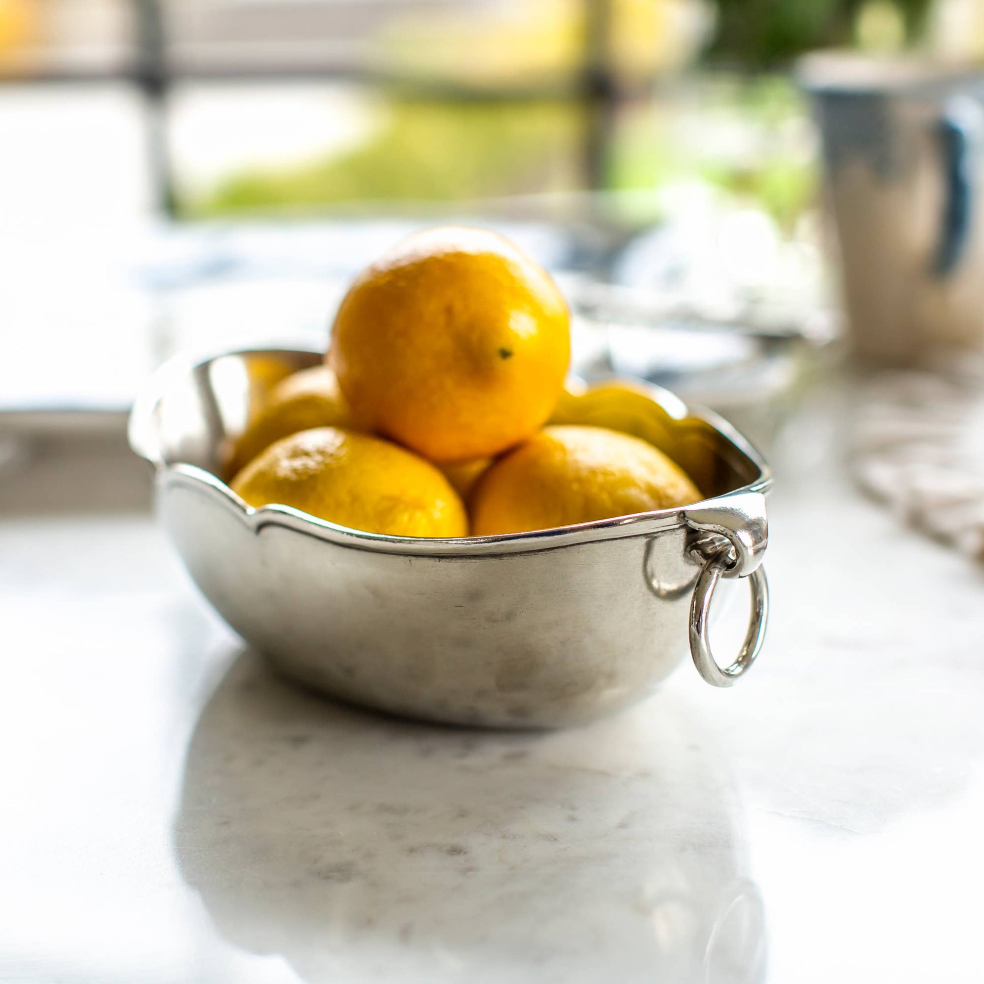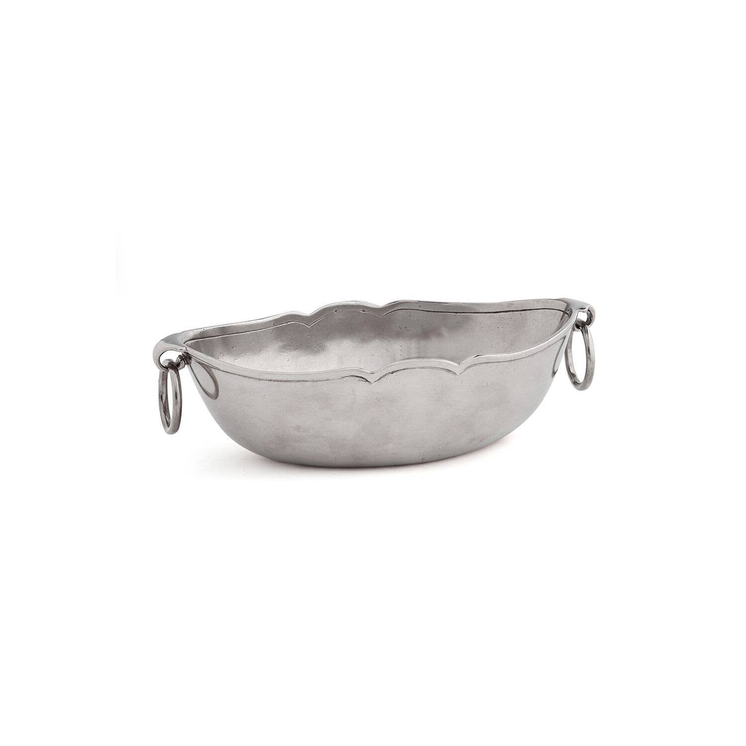 Our Peltro Oval Bowl with Rings offers a different look for a pewter piece. Its soft curved lines produce a wonderful contrast with other pieces in the collection creating a fun, whimsical look. Such a wonderful and artful touch to the table!