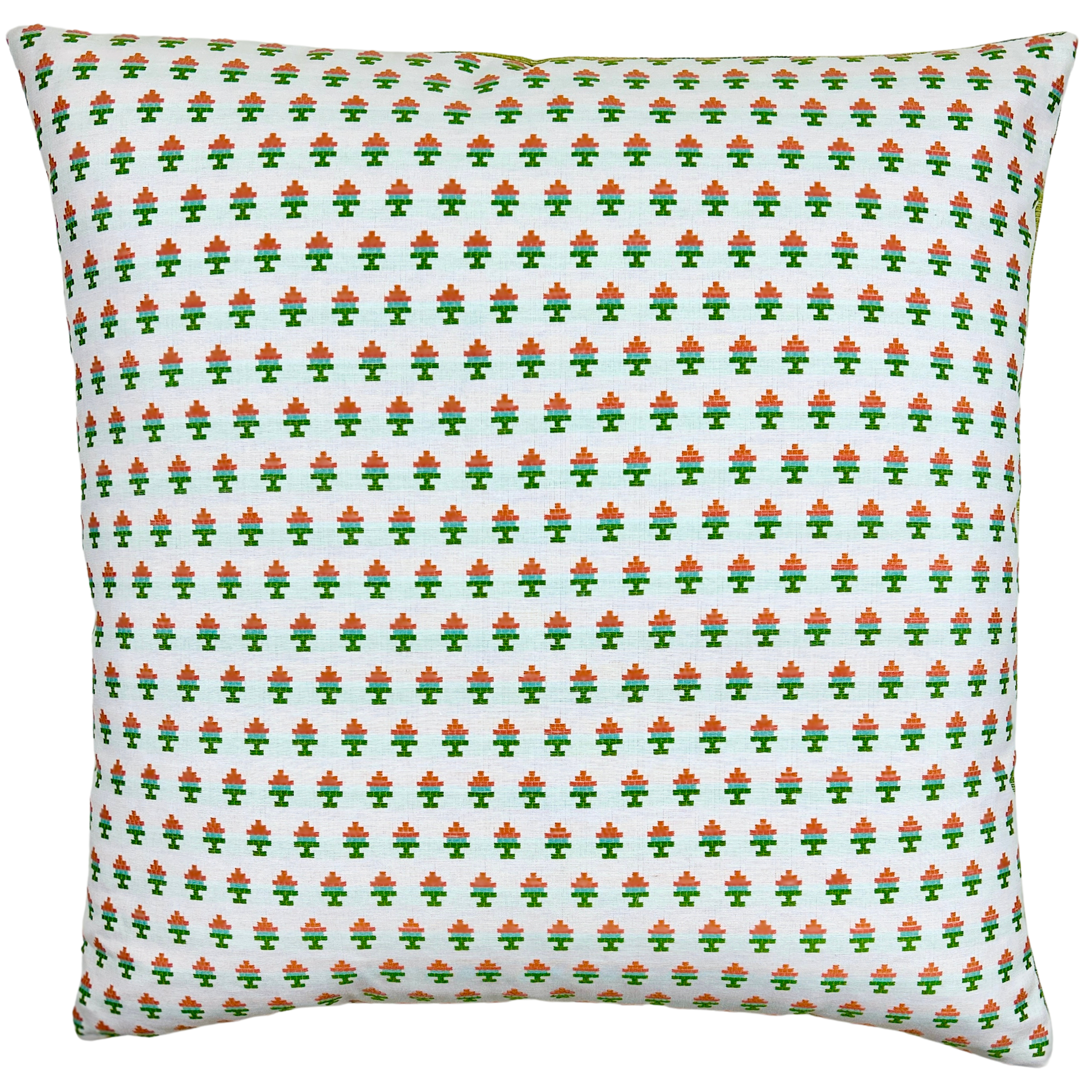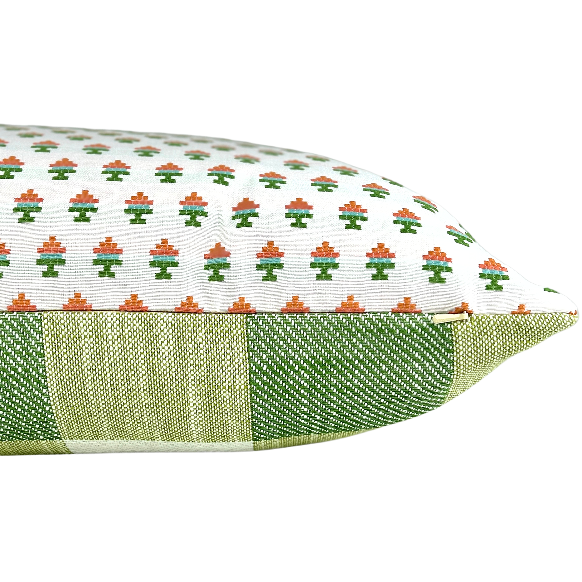 Elevate your home decor with a touch of sophistication. This mini printed pillow features a stylish coral and green design, complemented by a contrasting green plaid backer.